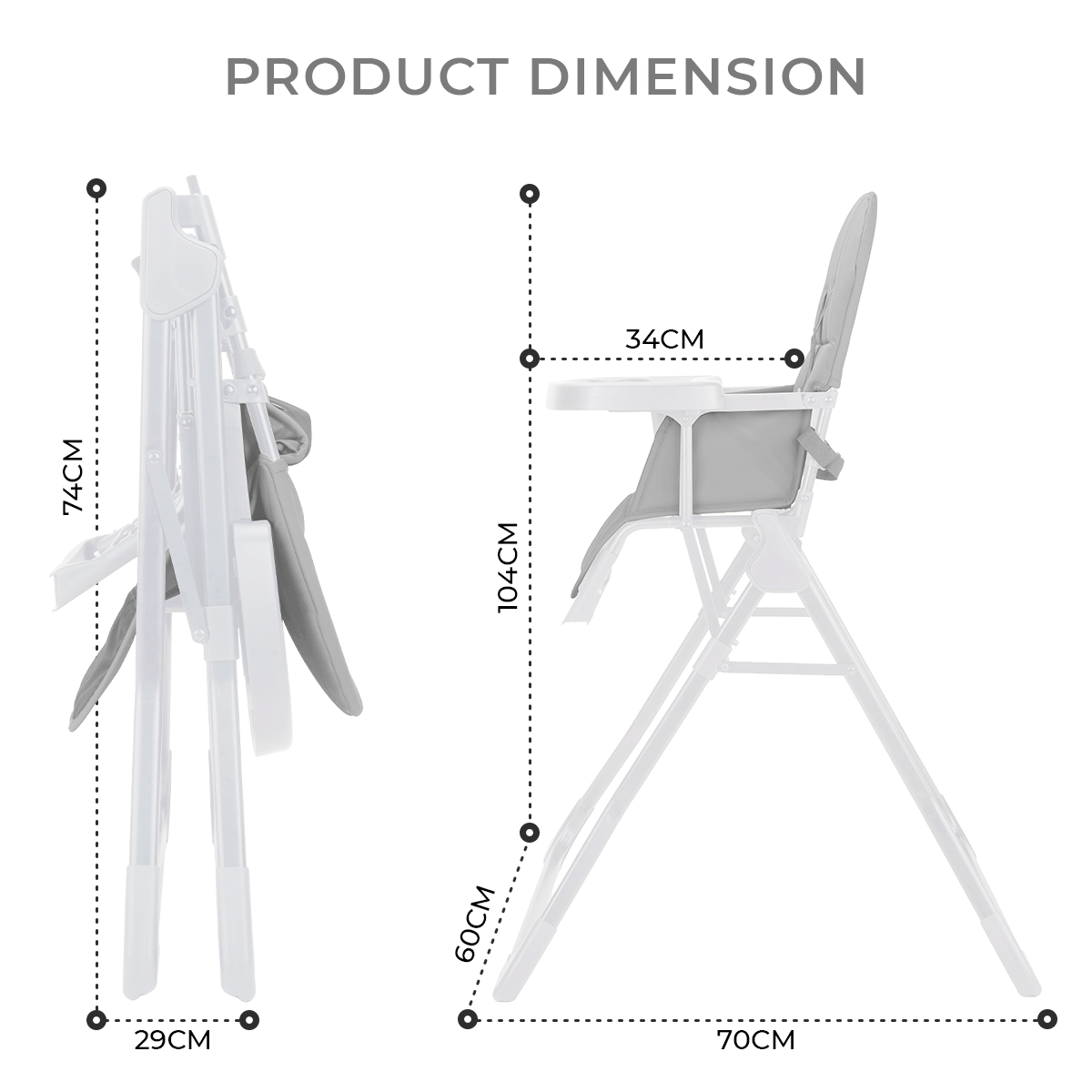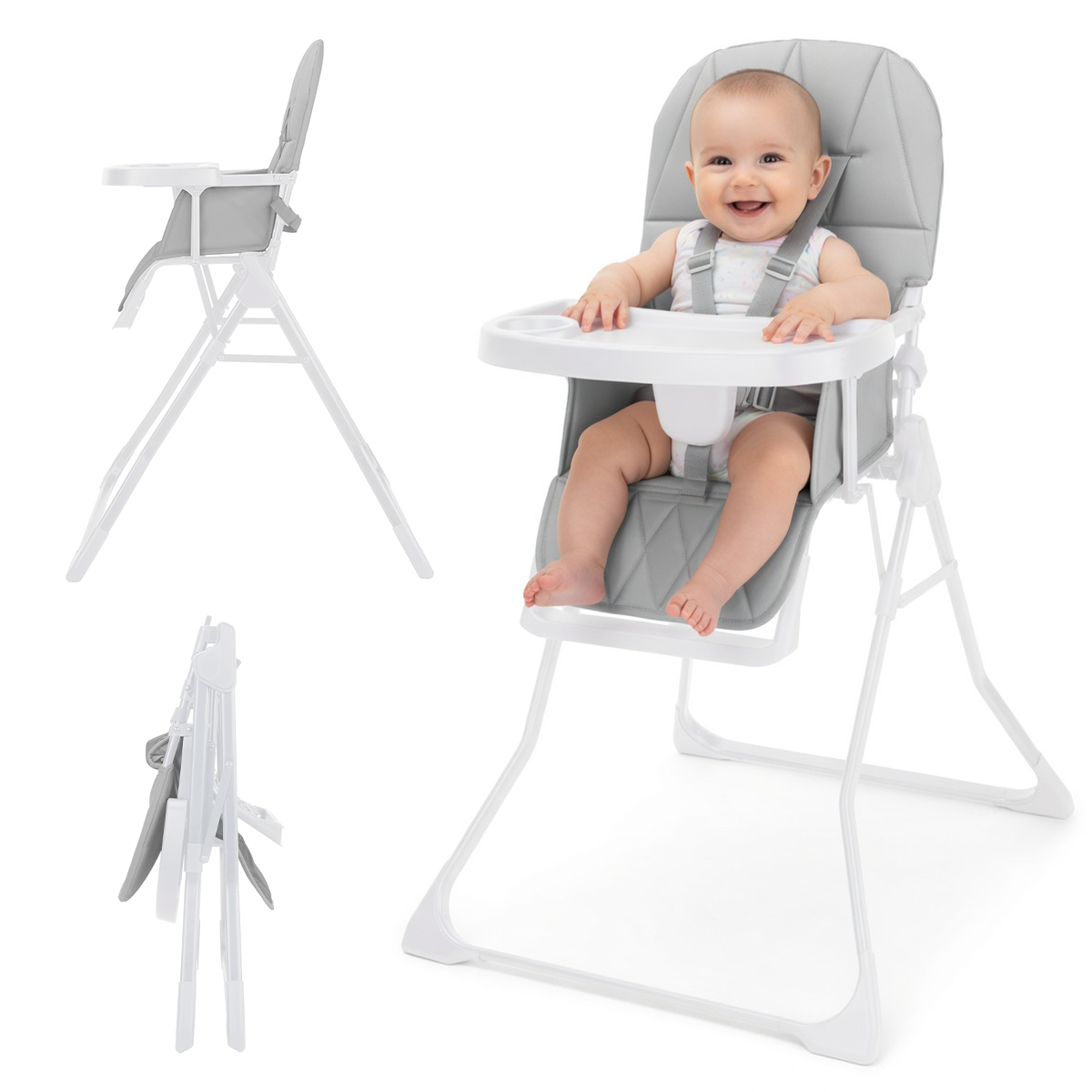 Foldable High Chair for Babies & Toddlers, Ultra-Compact Lightweight Grey