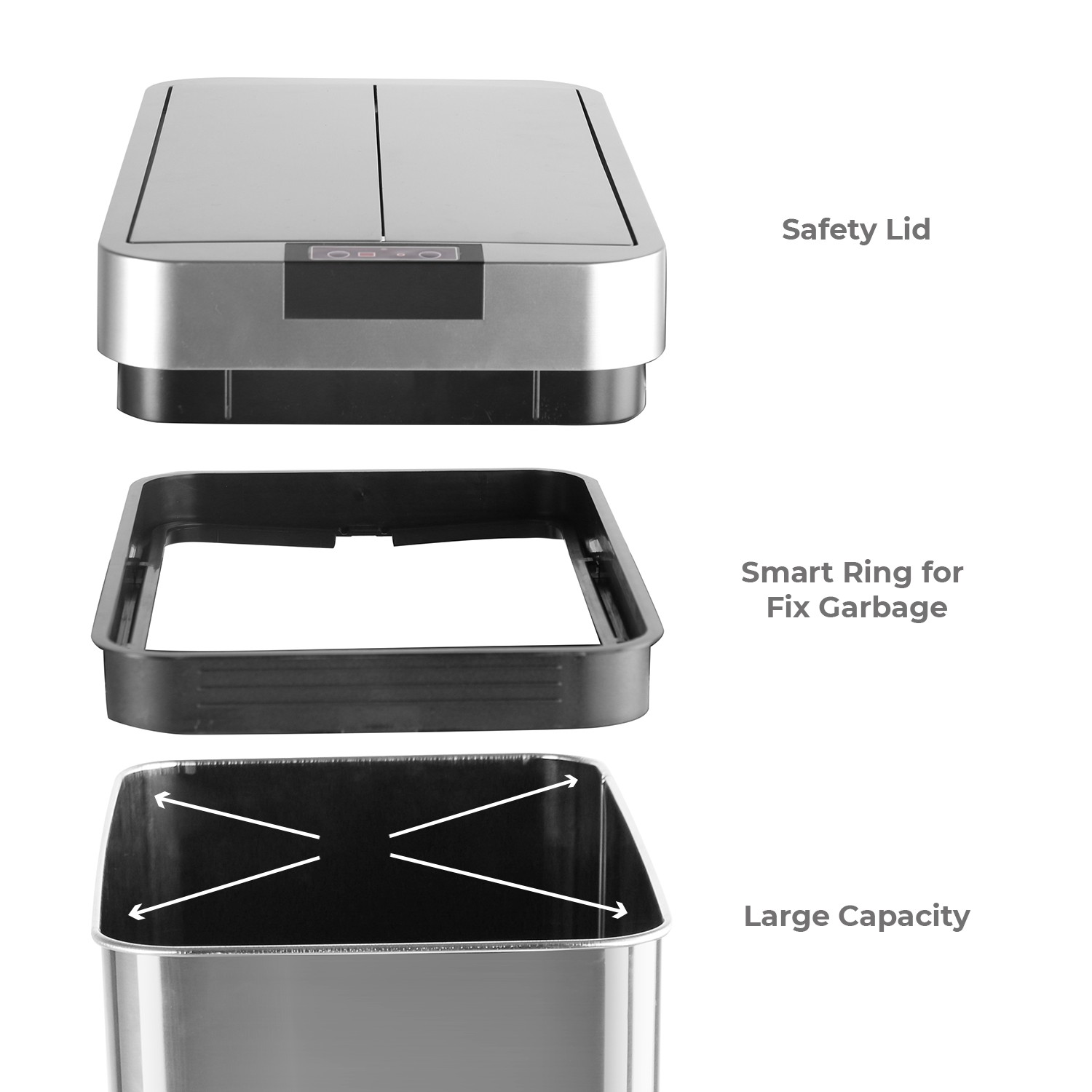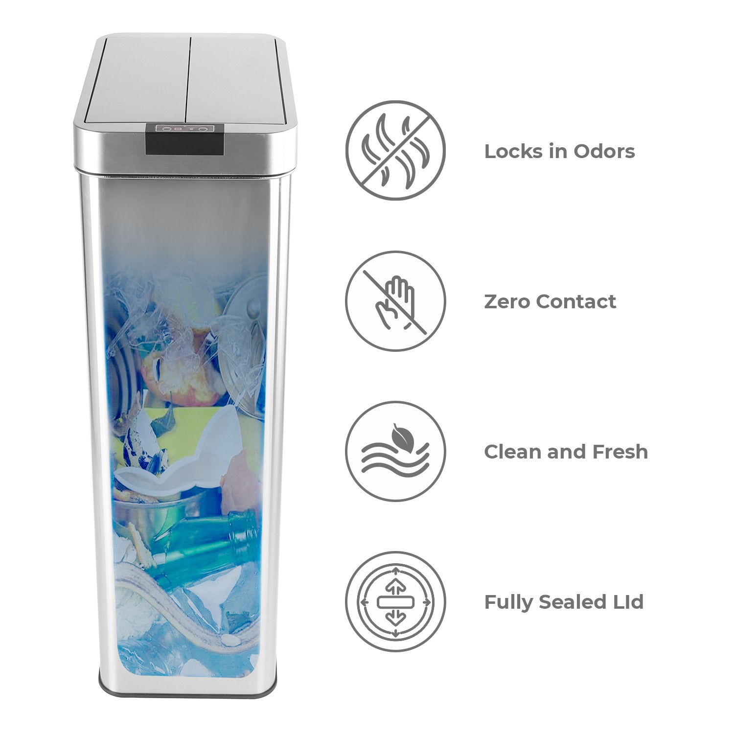 Designed with a premium anti-fingerprint stainless steel surface that resists smudges and stains. The sleek modern finish keeps your bin looking clean and stylish in kitchens, offices, or bathrooms.