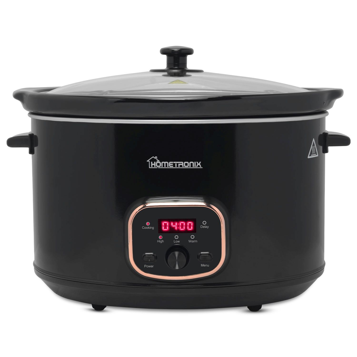 Serve directly from the removable, lead-free ceramic inner bowl, designed to retain heat and keep your meals table-ready for longer. Its non-stick surface ensures effortless cleaning, even after long cooking sessions, and it is fully dishwasher safe for added convenience. Cool-touch handles provide safe and comfortable handling, while the sleek satin black finish adds a modern, premium look to any kitchen. Includes a 1-year warranty.